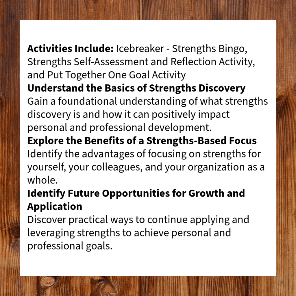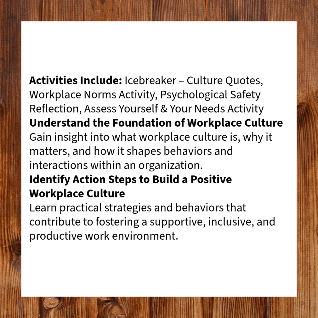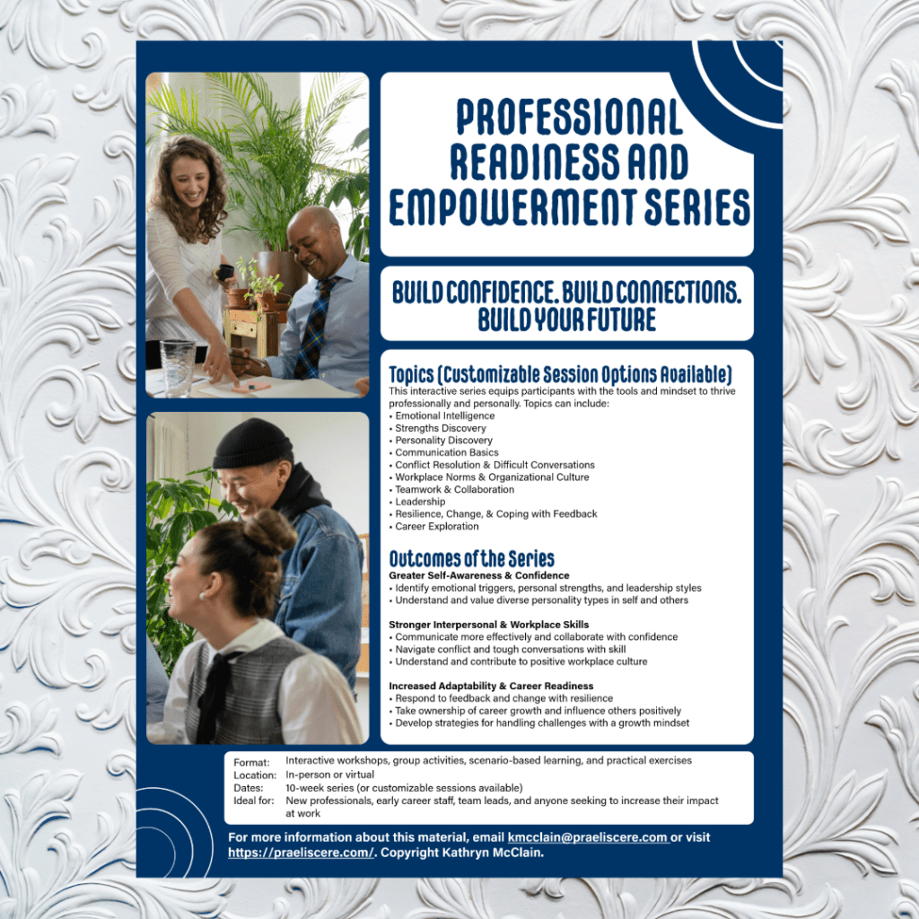 Interested in training options for your team, group, or organization? Whether you’re looking for soft skills development, leadership workshops, or professional development programs tailored to your goals, we’re here to help!