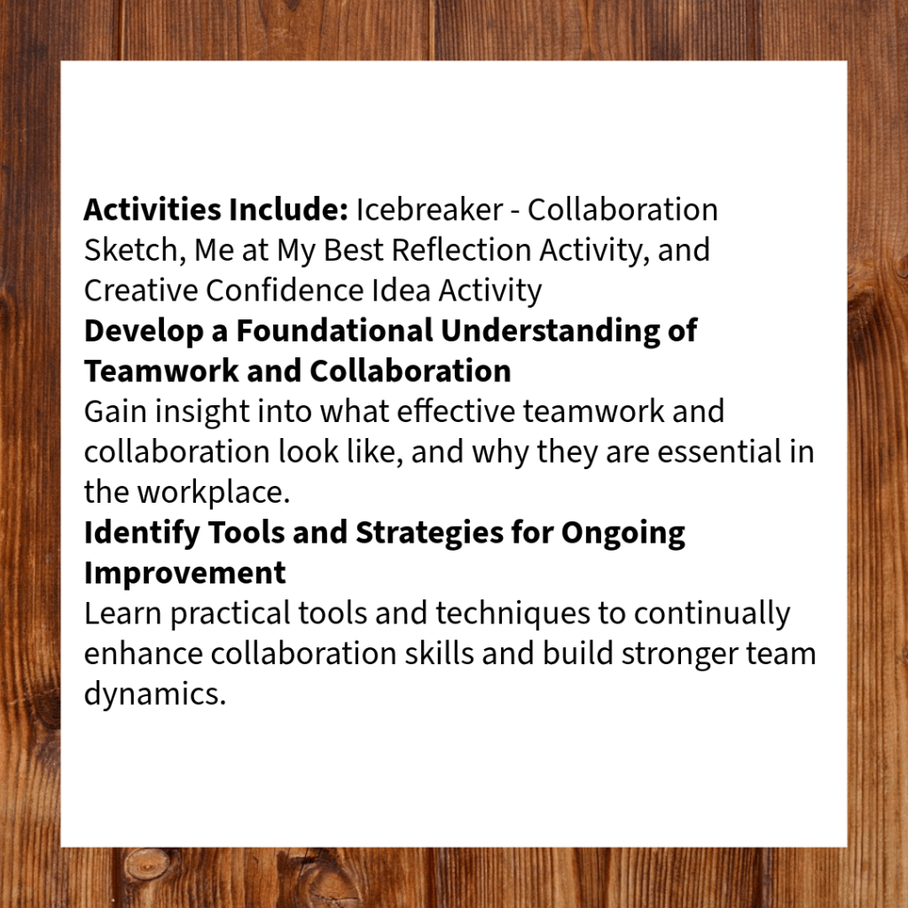 Format: Interactive professional development workshops, team-building activities, scenario-based soft skills training, and hands-on learning exercises
